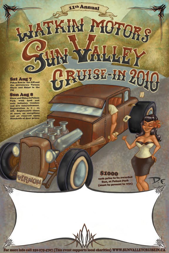 Second year in a row I’ve been asked to make the Sun Valley Cruise-in poster. You can checkout a printed version of the poster in Canadian Hot Rods magazine. I also got to design the t-shirt for the show along with a few other things.
