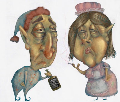 Heres a quick sketch with some color added of some christmas Elves who have been worked way to hard